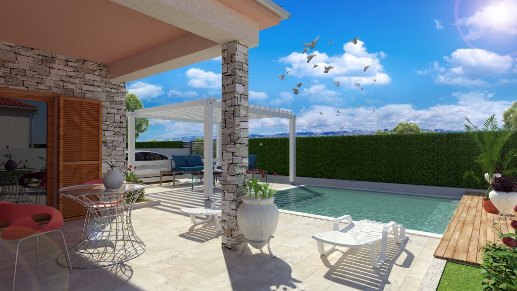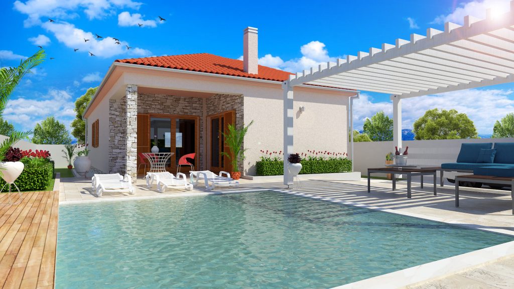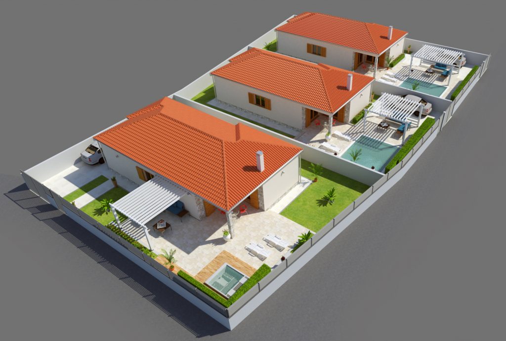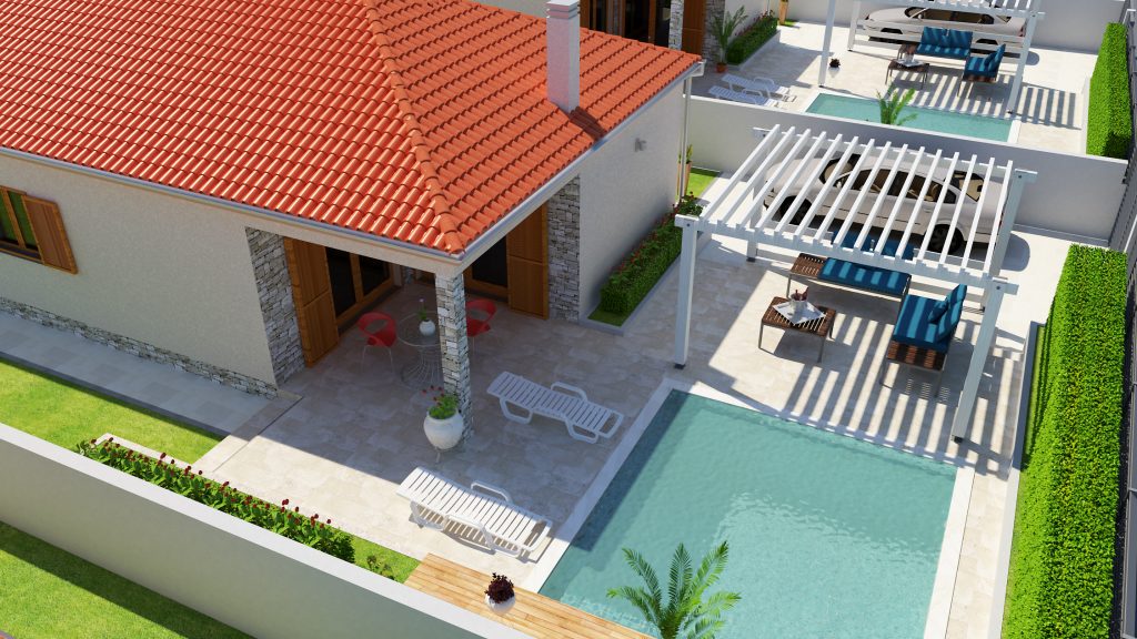 OpisDvije kuće s bazenima i okolišem